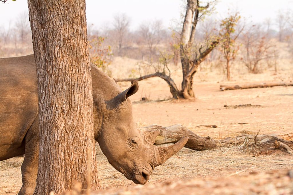 Marche guidée à la rencontre des rhinocéros blancs dans le parc de Mosi-Oa-Tunya (Zambie).