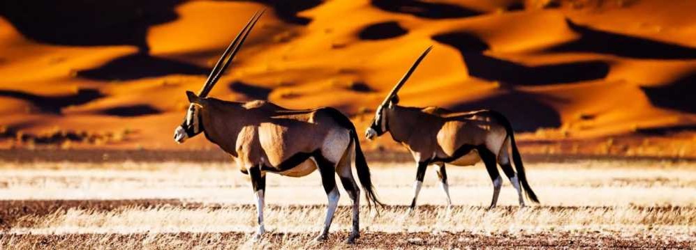 Arrivée à Sesriem en fin de journée, installation au lodge et premiers pas dans le désert du Namib, où le coucher du soleil embrase les dunes de mille teintes orangées.