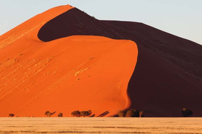 Réveil avant l’aube pour vivre l’un des moments les plus spectaculaires du voyage : le lever du soleil sur les dunes de Sossusvlei, parmi les plus hautes du monde.