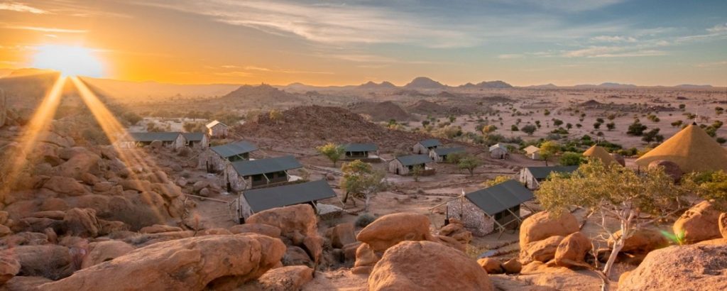 Lodge tout récent et raffiné au pied du Brandberg l’Ondjamba Hills est une petite pépite. Les tentes sont raffinées et disposées sur l’ensemble de la propriété ce qui offre une certaine intimité aux voyageurs. Les aires communes sont superbes et les panoramas magnifiques.