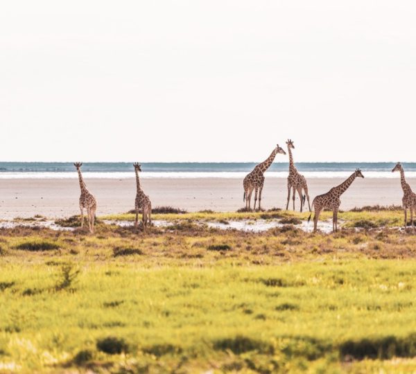 Ce premier contact avec Etosha vous plonge immédiatement dans l’ambiance du safari africain : girafes élancées, troupeaux de zèbres et de springboks, éléphants majestueux, mais aussi fauves tapis dans les herbes blondes.